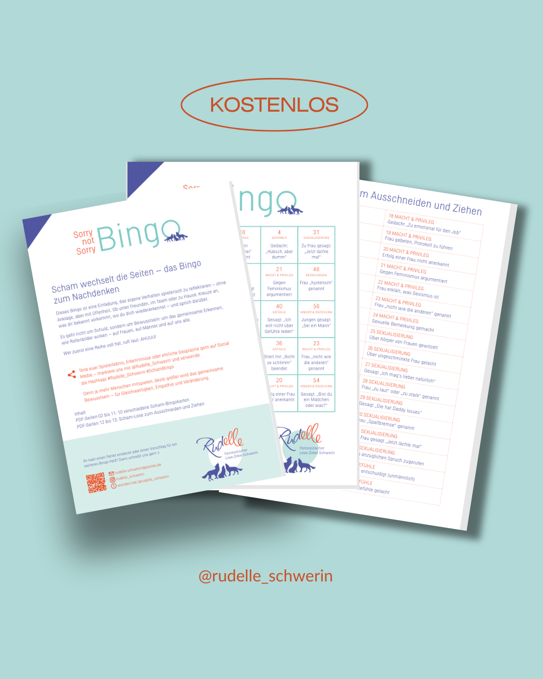 Dieses Bingo lädt dazu ein, gemeinsam über alltägliche Momente weiblicher Scham zu sprechen – ehrlich, spielerisch und solidarisch. Ob unter Freundinnen, Kolleginnen oder im Familienkreis: Kreuze die Situationen an, die du selbst schon erlebt hast – und erkenne, wie oft wir uns klein machen, anpassen oder entschuldigen.
